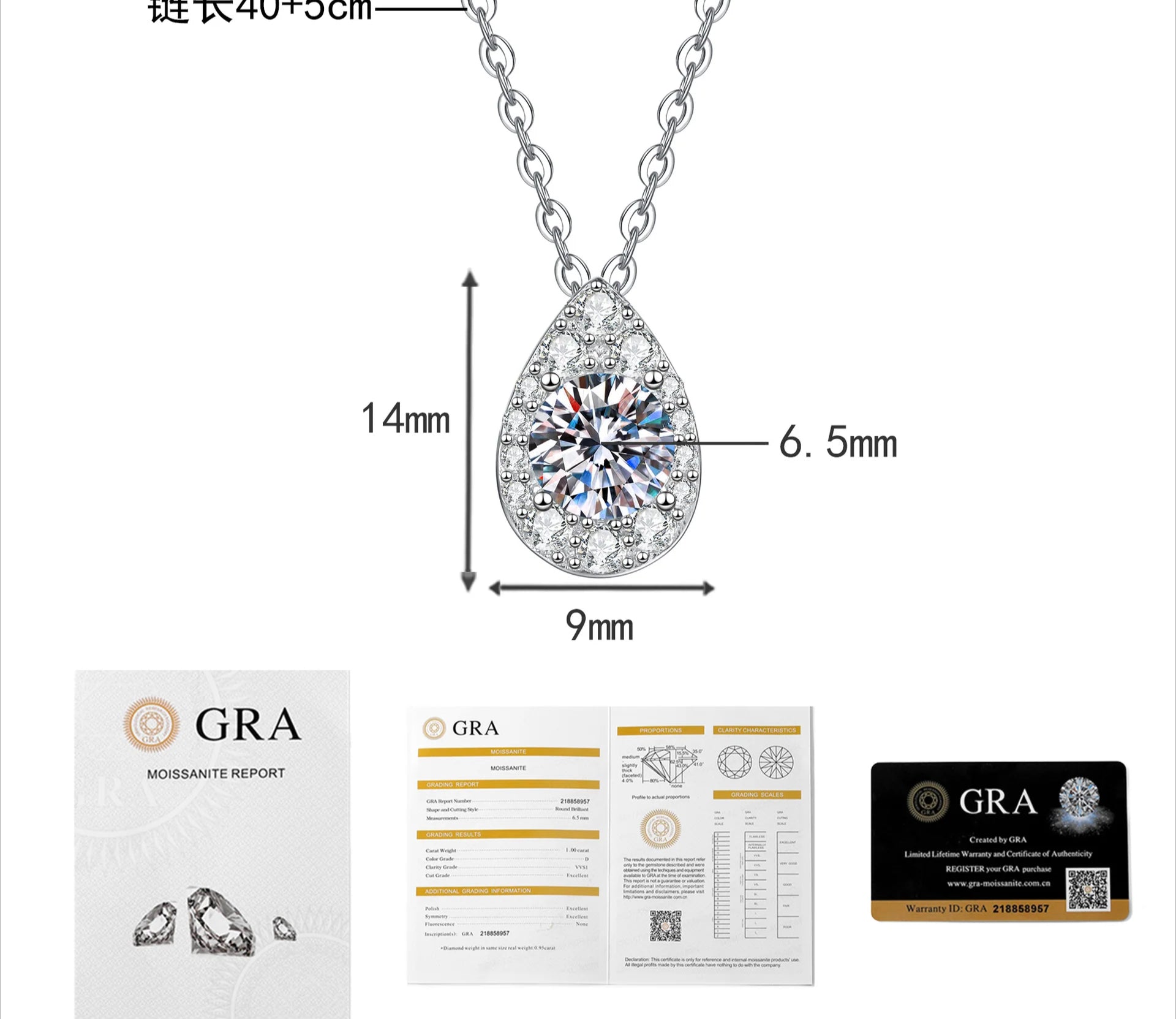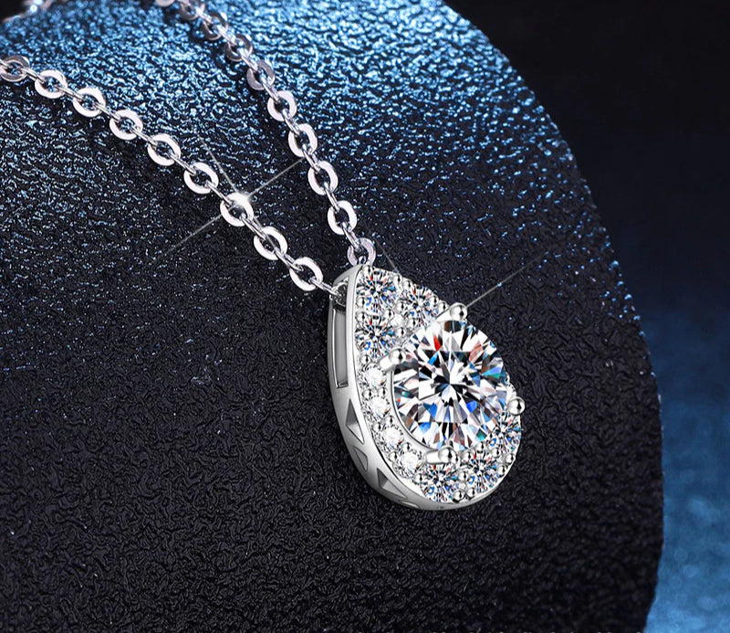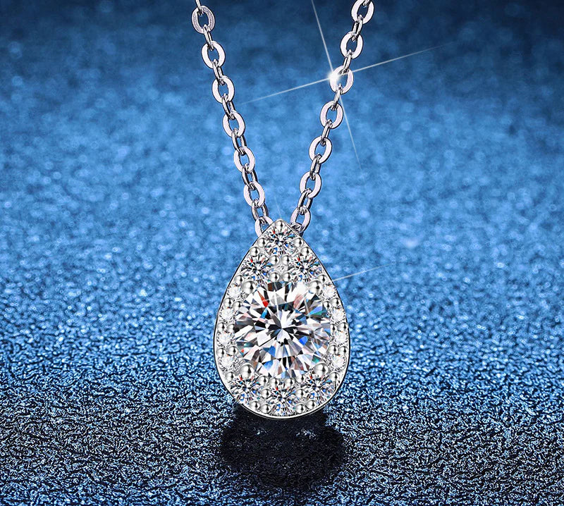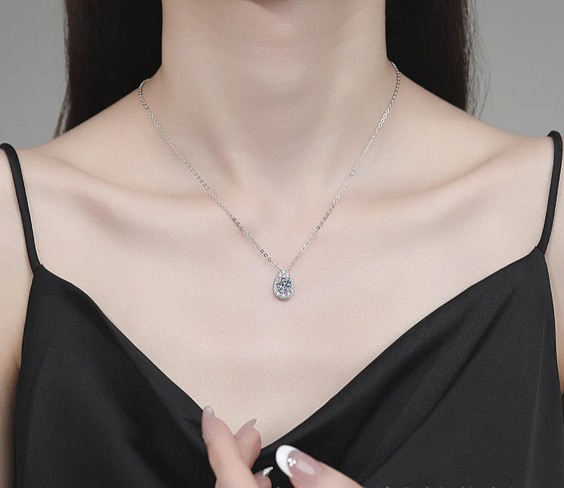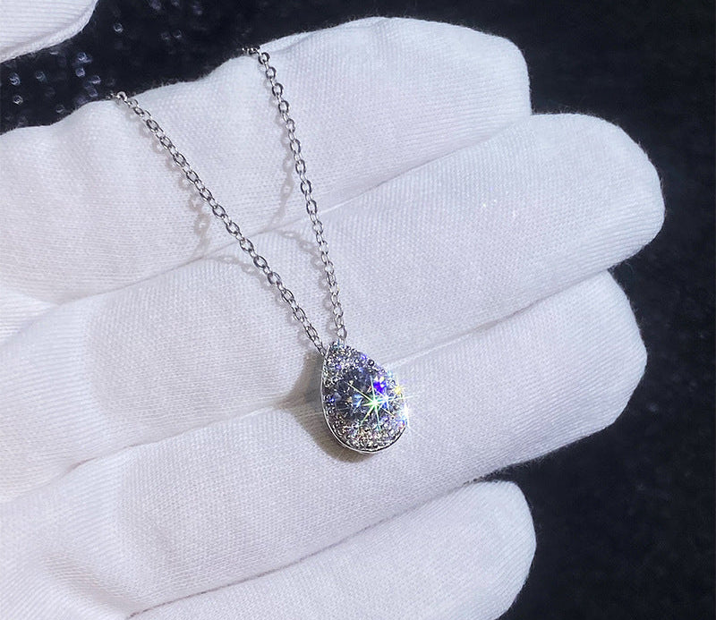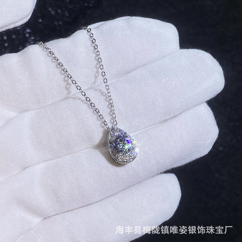 Cross-border hot-selling Mo 1ct moissanite pendant 925 sterling silver necklace temperament simple Korean version water drop collarbone chain wholesale